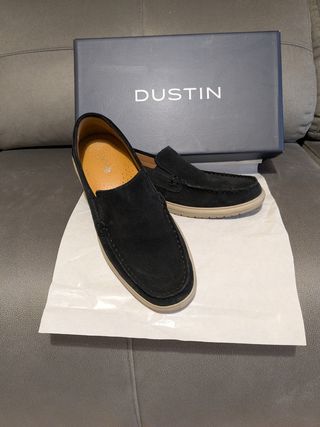 Vendo unos zapatos de hombre Dustin, color negro. Son mocasines de ante, con suela beige. Están impecables, solo puestos una vez fueron para una boda . - Modelo Dustin. - Material ante. - Suela beige.