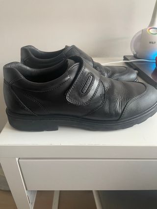Zapatos Pablosky, ideales para el colegio. Son un par de zapatos negros. Están en buen estado, con algunas señales normales de uso. -Cierre de velcro y puntera reforzada. Suela resistente.