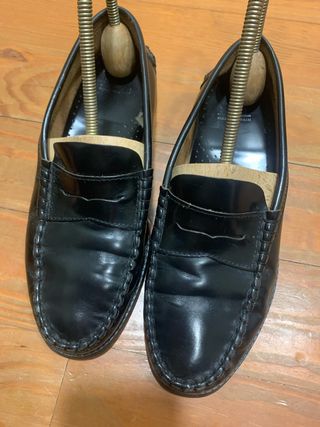 Mocasines Gomila (Menorca) en perfecto estado y muy poco usados. Se la añadieron medias suelas de goma para evitar el desgaste de la fina suela de cuero. Talla 42,5 y miden 28,5 cm desde el tacón a la puntera.