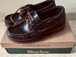 Zapatos náuticos de la marca Gorila en talla 36. Se encuentran en muy buen estado. - Color negro y marrón. - Diseño náutico clásico. - azul marino - cordones de piel marrón - suela marrón