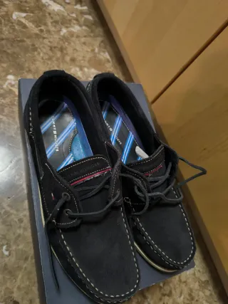 Náuticos de ante de la marca Tommy Hilfiger. - Diseño clásico de náutico. - Detalle de costuras blancas. - Cordones negros. - Logo de la marca en la lengüeta.