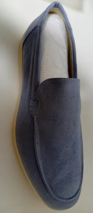 Zapatos tipo mocasín con acabado en imitación ante. El interior está forrado para mayor comodidad. - Material exterior: imitación ante. - Color: azul. - Talla: 46.