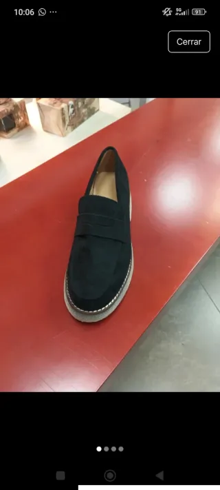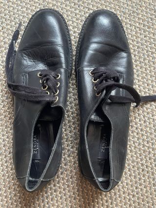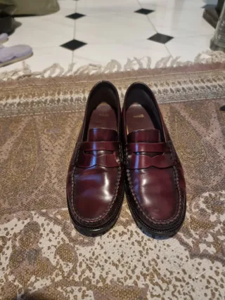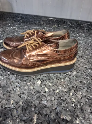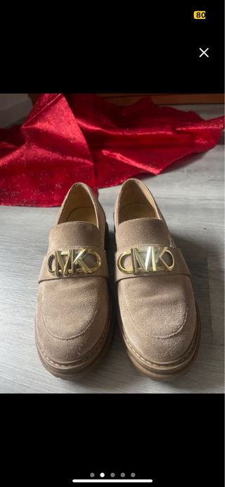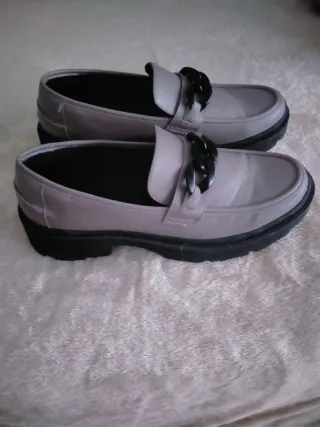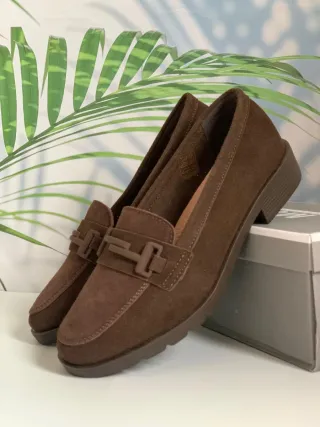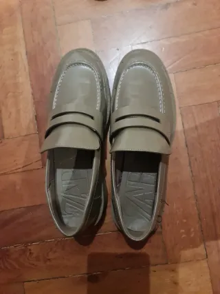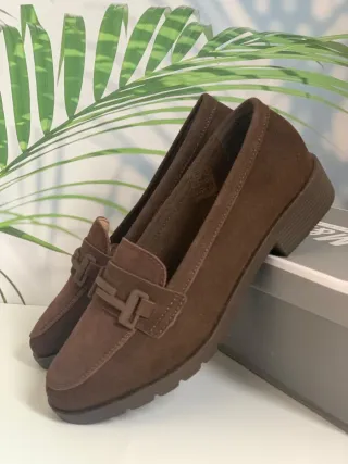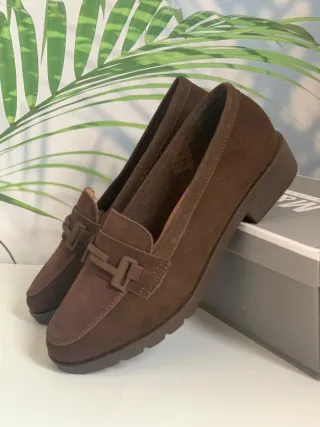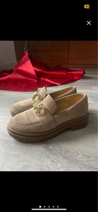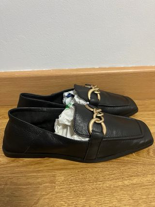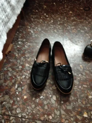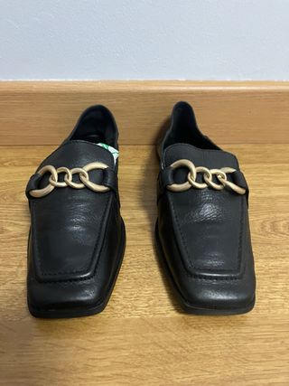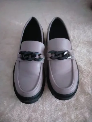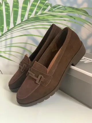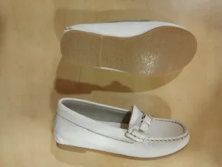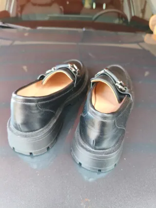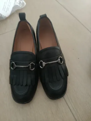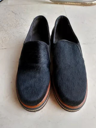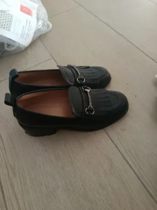 Elegantes zapatos estilo mocasín de piel para mujer. Los usé solo 2 veces, porqué son pequeños para mi. Quedan muy bonito en la pie y son comodos. Los compré en la tienda oficial por 100€.