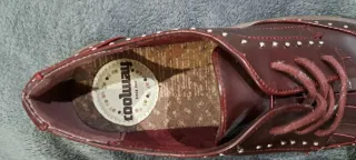 Zapatos estilo Oxford de mujer. - Color burdeos con detalles plateados. - Adorno de flecos en la pala. - Cordones a tono.