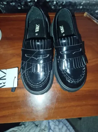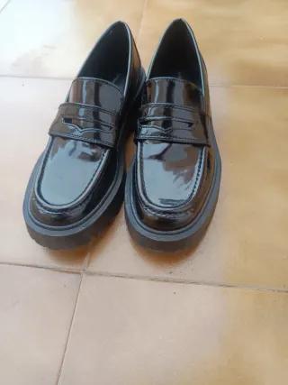 Mocasines negros para chica, completamente nuevos. - Diseño moderno con suela gruesa. . - Acabado brillante.
