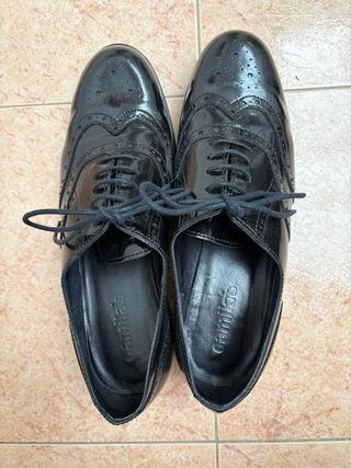 Mocasines de estilo Oxford para mujer. - Diseño clásico y elegante. - Suela gruesa y resistente. - Acabado brillante.
