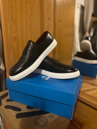 Mocasines de la marca EVEN&ODD en color negro. Diseño moderno y cómodo. - Suela gruesa y dentada. - Detalle de antifaz en la pala. - Material exterior combinado. NUEVAS CON SU ETIQUETA a estrenar Están en su caja original Son Originales y Auténticas Sin defectos Nunca se usaron