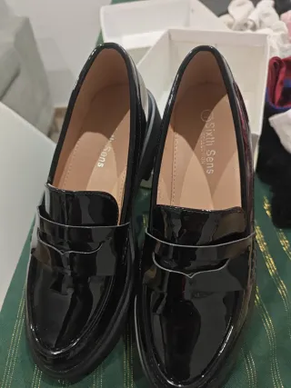 sin estrenar de piel sintética. Charol negro 37 europeo, suela gordita. muy cómodos y bonitos