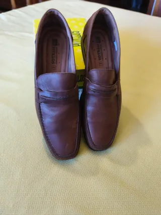 Elegantes zapatos de vestir de la marca Pitillos. - Diseño tipo mocasín. - Acabado brillante. - Tacón bajo y cómodo. Piel. Súper cómodos, ligeros y suaves. Muy buen tacto . Color muy bonito.