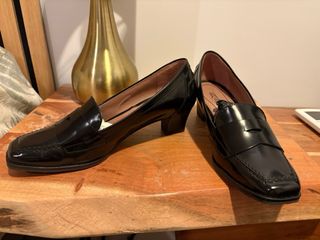 Mocasines de mujer negros con adorno y tacon. Suela y estructura bien. La piel esta un poco gastada de ahí su bajo precio.