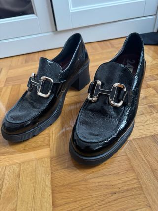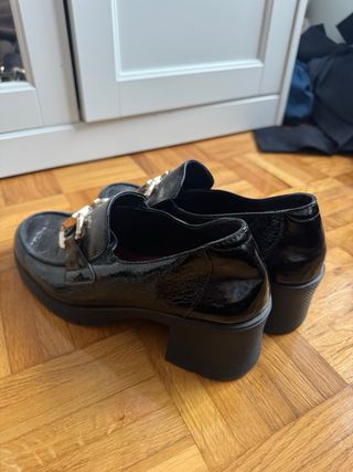 Mocasín de tacón acharolado.