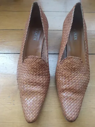 Zapatos de tacón en color camel con un diseño trenzado. - Material exterior: Piel trenzada. - Interior: Piel. - Marca: Kollflex. Número 39.5 Altura de tacón 3.5 cm.