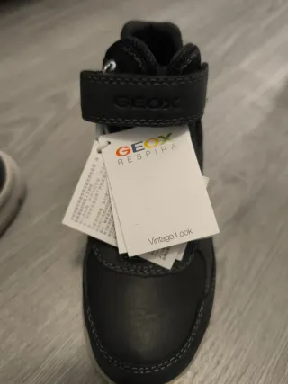 Zapatos Geox para niños en tonos negro y gris. Cuentan con cierre de velcro y cordones. ES LA TALLA 31, NO 35. - Cierre de velcro. - Cierre de cordones. - Detalle lateral. - Suela de goma. - TALLA 31!!! NO 35 - SIN USAR, SIN ESTRENAR
