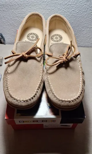 Mocasines de serraje para niño nuevo Talla 35 Serraje beige Suela Toppflex cerco - Material exterior de serraje. - Diseño tipo mocasín. - Detalle de pespuntes.