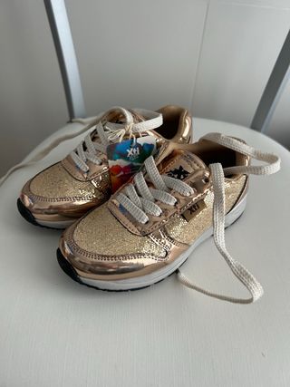 Zapatos para niña de la marca Xti Kids en color bronce. Perfectos para cualquier ocasión. - Diseño moderno y cómodo. - Cierre de velcro para un ajuste fácil.