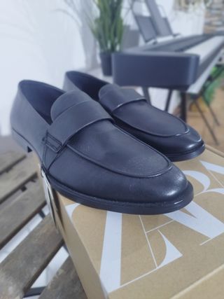 Mocasines de la marca Zara en color negro y talla 41. Un calzado elegante y cómodo. - Diseño clásico de mocasín. - Suela gruesa y resistente.