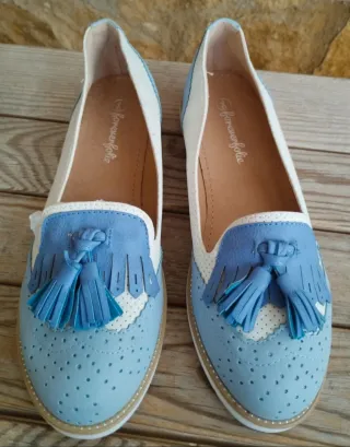 Mocasines de la marca Pitillos en color azul. Muy poco uso. - Costuras decorativas en contraste. - Suela cómoda. Costaron 60 eur.