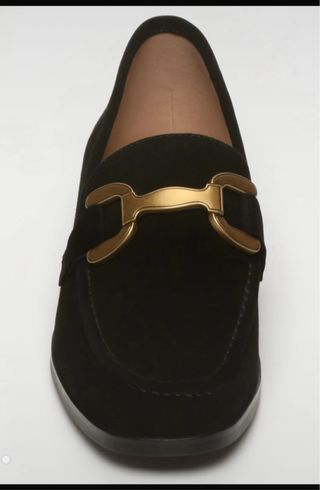 Preciosos mocasines de Zara. Ideales para darle un toque sofisticado a cualquier look. - Diseño de mocasín clásico con una cadena decorativa con pedrería. - Suela plana. - Talla: (Añadir talla) - Perfecto estado.
