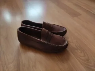 Elegante par de mocasines Bexley de ante marrón. Son de un color marrón oscuro, comprados en junio 2025 y con muy poco uso porque me están pequeños. Suela de cuero con patín de goma. - Fabricados en ante. - Estilo clásico y versátil. - Perfectos para cualquier ocasión.