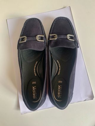 Modelo Annytah. La etiqueta pone talla 37,5 pero es más bien talla 37. La plantilla interior no se puede quitar. Ante de color azul marino Hebillas plateadas Muy poco usados. Están como nuevos.