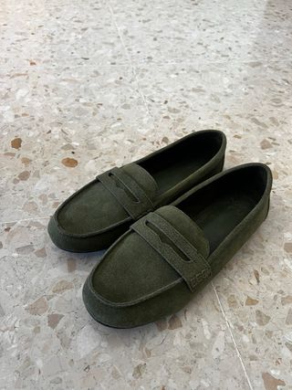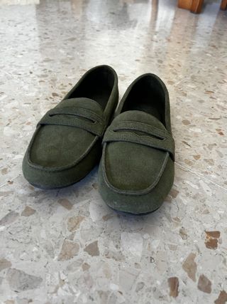 Mocasines de ante en color verde, usados una sola vez. - Material: Ante - Color: Verde - Estado: Como nuevos
