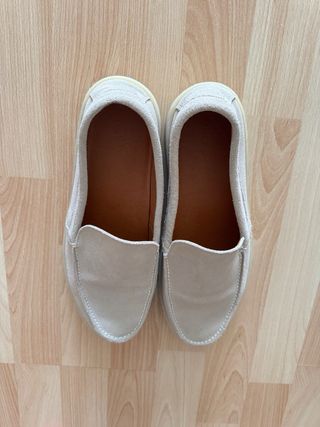 Vendo mocasines Mango de ante color beige / crema. Se han usado solo una vez, están en estado excelente, prácticamente como nuevos (sin desgaste visible). ✅ Muy cómodos y ligeros ✅ Color fácil de combinar (va genial con chinos, vaqueros o pantalón de vestir) ✅ Estilo smart casual Talla 43