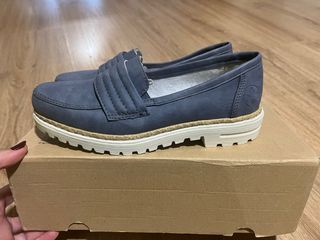Mocasines de piel para mujer. Piel alta calidad, me los puse en casa para probarlos y me equivoqué de talla. No los puedo devolver. Nuevos cuestan 129 eur en la pagina de yerse. Pueden comprobarlo.