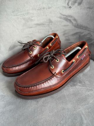 Mocasines Sebago de cuero en color marrón. Un clásico para cualquier ocasión. - Diseño náutico. - Cordones de ajuste. - Ojales metálicos.