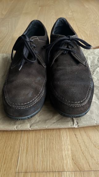• Mocasines de ante com cordones • Color marrón • Material exterior: ante • Cierre: cordones • En buen estado • Talla 42 • Son de Geox