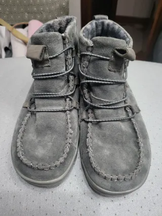 Botines de ante con forro interior cálido. Recycled Brown - Material exterior: ante. - Color: gris. - Cierre con cordones. - Diseño tipo mocasín en la puntera.