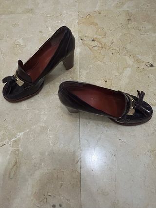 Elegantes zapatos de vestir de la marca Pitillos. - Diseño tipo mocasín. - Acabado brillante. - Tacón bajo y cómodo. Piel. Súper cómodos, ligeros y suaves. Muy buen tacto . Color muy bonito.