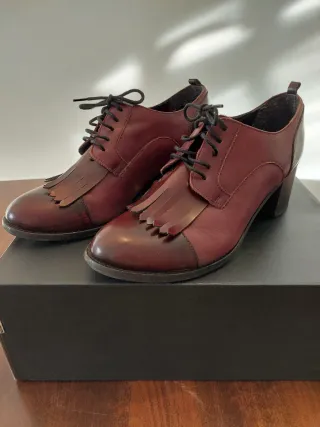 Elegantes zapatos castellanos de piel en color burdeos. Usados cuatro veces. - Fabricados en piel. - Diseño clásico castellano. - Talla 36.