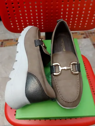 Mocasines de la marca Amarpies en talla 40. Un calzado elegante y cómodo. - Diseño tipo mocasín. - Detalle metálico en la pala. - Suela de plataforma.