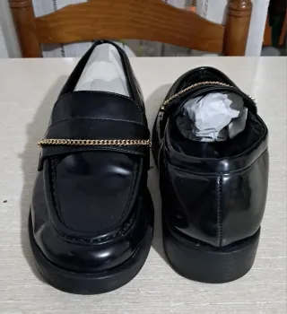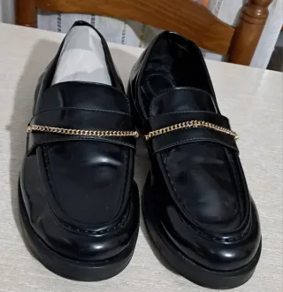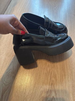 Mocasin negro, suela gruesa, puestos en una ocasion, para mi suela alta. Son de H&M