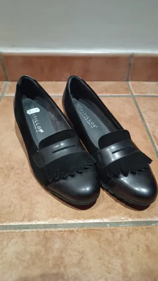 Elegantes zapatos de la marca Pitillos en color negro. Piel - Diseño tipo mocasín con flecos. - Material exterior de piel y ante. - Tacón bajo para mayor comodidad.