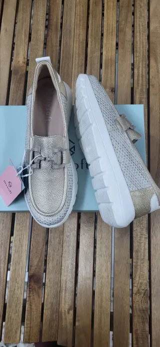 Mocasines dorados MySoft con rejilla beige