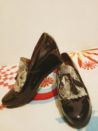 Mocasines de plataforma número 40. Color negro. Son de piel. Tienen unas 3 o 4 puestas. Se encuentran en buen estado.
