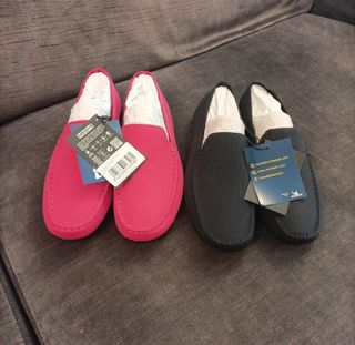 Se venden dos pares de mocasines Ecoalf para mujer, ambos nuevos y con etiquetas. - Un par en color fucsia. - Un par en color negro. - Diseño tipo mocasín. - Fabricados con materiales sostenibles. - Nuevos con etiqueta - Talla 36