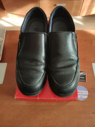 Vendo un par de zapatos negros tipo mocasín. Son suaves y cómodos, ideales para el día a día. Son muy suaves Diseño elegante y sencillo. - Suela resistente.con poco uso , los vendo por ser estrechos para mi pie con juanetes.