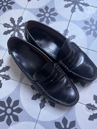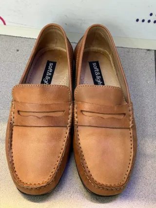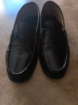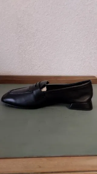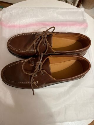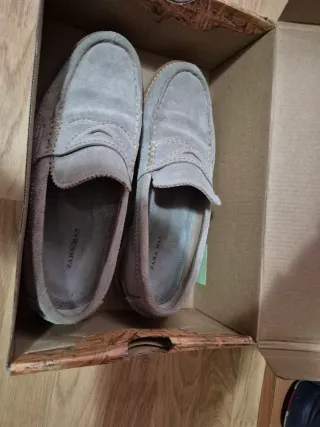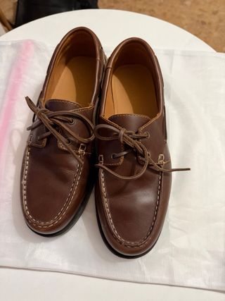 Vendo mocasines ZARA de piel marrón, talla 43. Zapatos elegantes y cómodos, en buen estado general, con signos normales de uso (ver fotos). Ideales para vestir informal, trabajo o verano. 🔹 Marca: ZARA 🔹 Tipo: Mocasines / náuticos 🔹 Material: Piel 🔹 Color: Marrón 🔹 Talla: 43 (ZARA suele tallar normal) 🔹 Estado: Buen estado