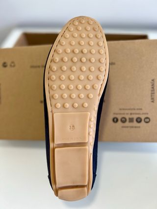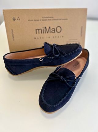 Mocasín serraje mujer azul marino Marca Mimao artesanía española Plantilla confortable Suela goma anti deslizante Usado muy muy pocas veces Perfecto estado