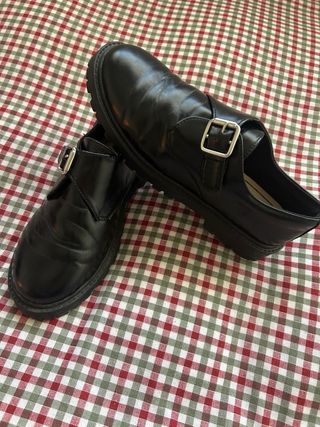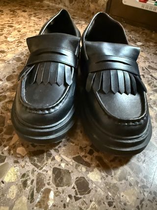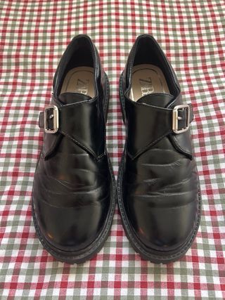 SOLO HAGO ENVÍOS, NO ENTREGO EN PERSONA. Mocasines negros de Zara. - Diseño con hebilla y velcro - Suela gruesa. - Ligeras marcas de uso en la parte interior, últimas fotos
