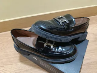 Elegantes mocasines de charol Massimo Dutti para mujer, talla 38. - Sólo se han usado para probar en tienda y en casa, así que están literalmente nuevos. - Diseño clásico y sofisticado (comprados en 2021) - Suela gruesa y cómoda. - Acabado brillante.