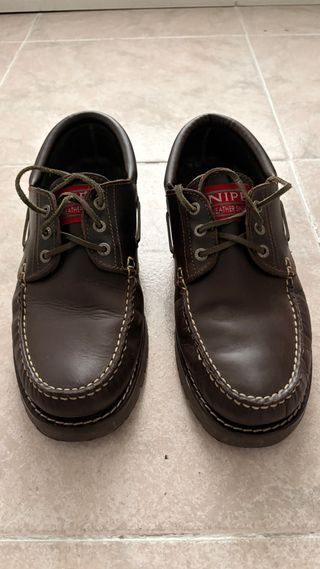 Mocasines de piel de la marca Snipe en color marrón. - Diseño clásico de mocasín. - Cordones de ajuste. - Suela de goma resistente. - uso solo dos veces