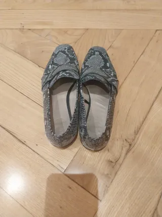 Elegantes zapatos con estampado de piel de serpiente. - Diseño tipo mocasín. - Acabado en piel. - Talla 37.