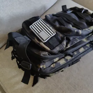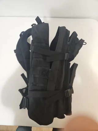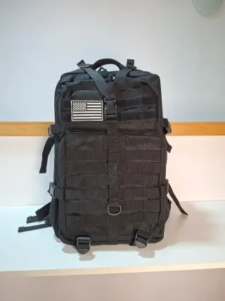 Mochila de estilo táctico militar con capacidad de 35 litros y sistema MOLLE. Compartimento principal espacioso. Múltiples bolsillos frontales para organización. Sistema MOLLE para acoplar equipo adicional. Medidas: 50 x 35 x 20 cm (aprox. 35 litros). Gran capacidad y varios compartimentos con cremallera. Correas laterales ajustables de compresión y gran resistencia. Está en perfecto estado, como nueva. Ideal para senderismo, trabajo, airsoft o uso diario. Algo negociable