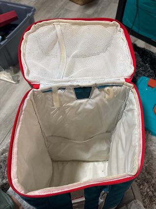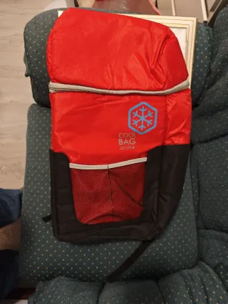 Mochila térmica de gran capacidad, ideal para mantener tus alimentos y bebidas frescos. - Compartimento principal espacioso. - Bolsillos laterales de malla. - Capacidad de 20 litros. Solo tiene el desperfecto del asa que se ve en la foto. Se puede pedir con cualquier otro artículo del perfil. Se puede recoger en mano o pedir con envío