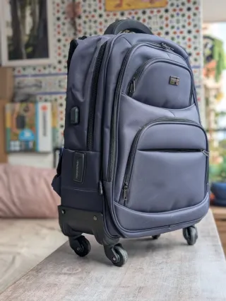 Maleta tipo trolley convertible en mochila, muy práctica y versátil. Medidas 50x35x20 cm (aprox. 35 litros de capacidad), ideal como equipaje de cabina o para viajes cortos. Dispone de múltiples compartimentos con cremalleras, bolsillos organizadores y estructura resistente. Se puede llevar con ruedas y asa extensible o como mochila gracias a sus correas ocultas. Diseño funcional y ligero. Producto nuevo, sin uso. Fotos reales del estado actual, forman parte de la descripción. Abierto a ofertas razonables