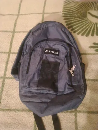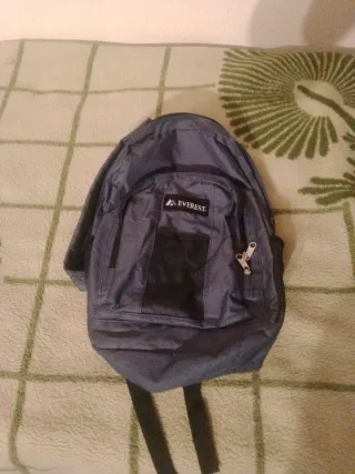 Mochila de la marca Everest con una capacidad de 20 litros. - Color azul y gris. - Compartimento principal con cierre de cremallera. - Bolsillo frontal con malla.