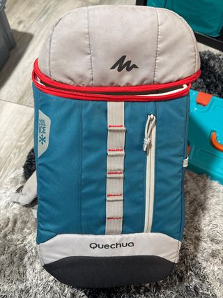 Mochila nevera de la marca Quechua, ideal para mantener tus bebidas y alimentos frescos. - Capacidad de 20 litros. - Diseño en color azul y gris. - Compartimento principal con aislamiento térmico.